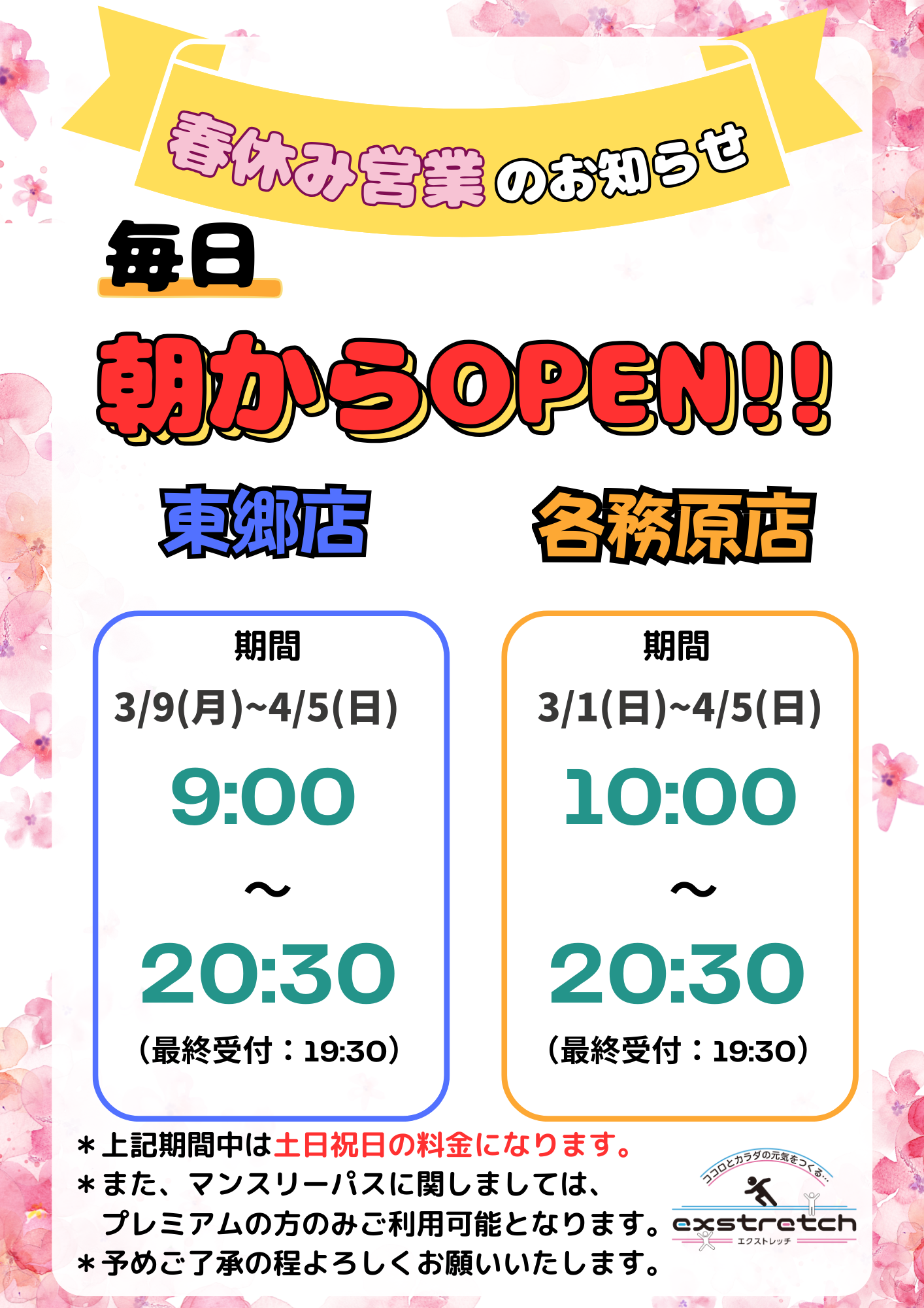 【両店】🌸3月中は毎日、120分コース200円引き!🌸