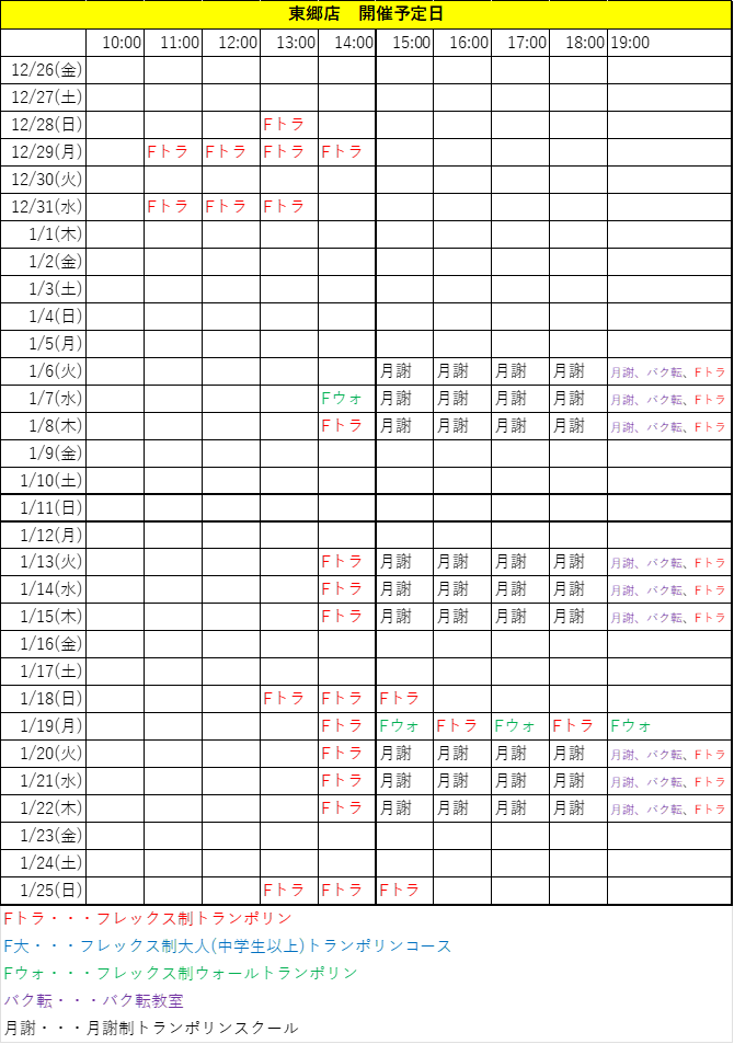 【月謝制】トランポリンスクール空き状況